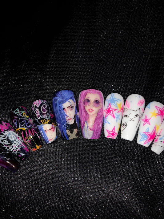 Jinx Vi Arcane Theme Luxury Handmade Press-On Nails